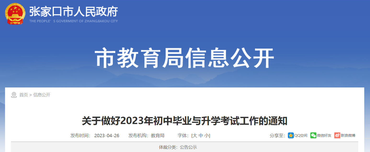 從張家口市教育局獲悉,2023年河北張家口初中畢業(yè)與升學(xué)考試工作的通知已公布,6月21日起舉行考試,具體詳情如下: