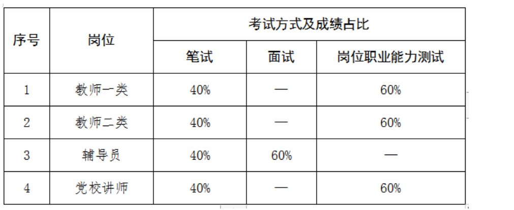 (1)考生參加招聘崗位全部考試。各崗位類型考試方式及成績(jī)占比(見下表)