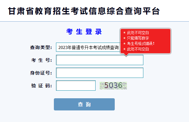 特別說明:甘肅省教育考試院成績(jī)查詢系統(tǒng)是查詢“2023年甘肅省普通專升本統(tǒng)一考試成績(jī)”官方渠道。