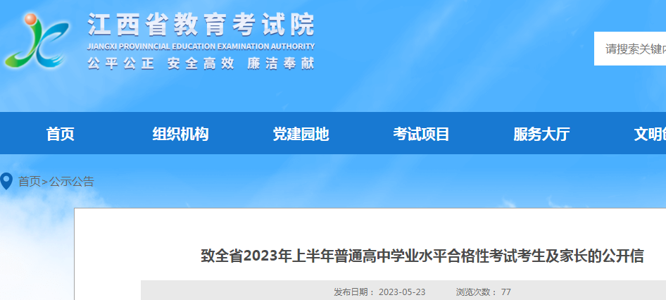 會(huì)考頻道從江西省教育考試院了解到,致江西省2023年上半年普通高中學(xué)業(yè)水平合格性考試考生及家長(zhǎng)的公開(kāi)信已發(fā)布。從公開(kāi)信中獲悉2023年上半年普通高中學(xué)業(yè)水平合格性考試將于5月27日-28日舉行。詳情如下: