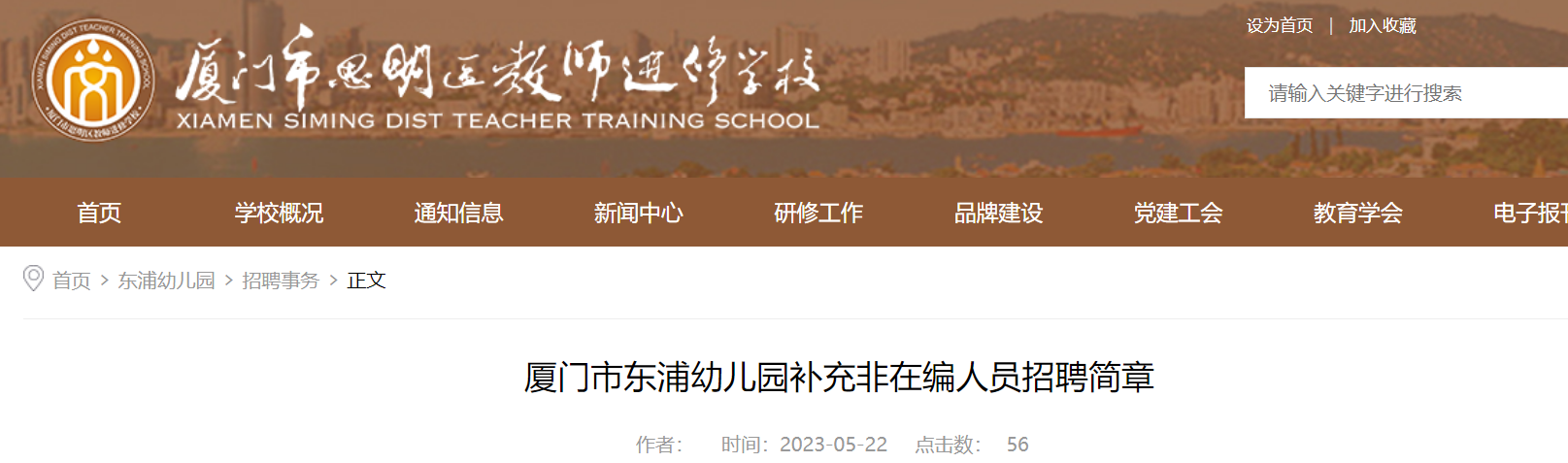 2023福建廈門市東浦幼兒園教師招聘簡章已發(fā)布,報(bào)名時(shí)間:即日起至6月15日?,F(xiàn)將招聘公告原文發(fā)布如下: