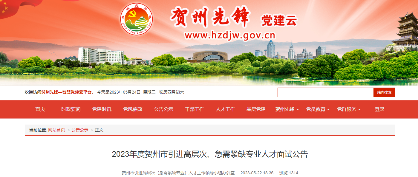 按照《2023年度賀州市引進(jìn)高層次、急需緊缺專業(yè)人才公告》的規(guī)定和要求,現(xiàn)將面試有關(guān)事項公告如下: