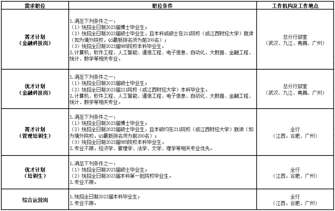 1.2023屆校園招聘崗位均為九江銀行正式員工。