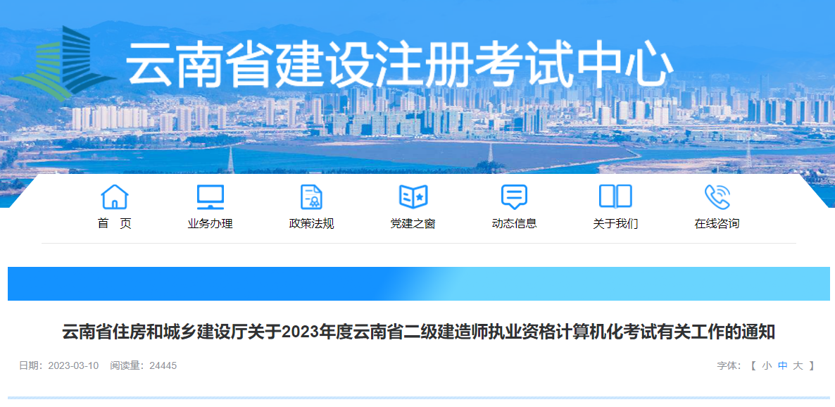(一)2023年度云南省二級(jí)建造師執(zhí)業(yè)資格計(jì)算機(jī)化考試工作由省住房城鄉(xiāng)建設(shè)廳負(fù)責(zé),本次考試所發(fā)布的通告、通知及考試所有信息均在官方網(wǎng)站公布。因查看其他渠道的錯(cuò)誤信息造成的報(bào)考失誤,由報(bào)考人員自行負(fù)責(zé)。報(bào)考人員應(yīng)避免通過其他網(wǎng)站以跳轉(zhuǎn)方式進(jìn)入報(bào)名系統(tǒng),防止造成個(gè)人信息泄露。