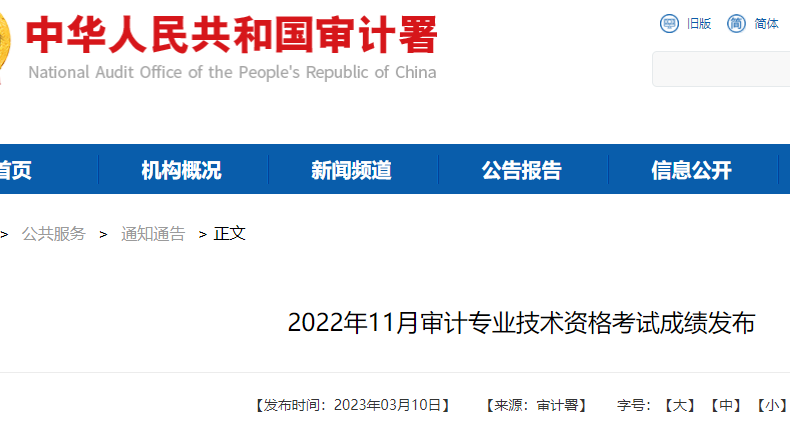 小編根據(jù)中華人民共和國(guó)審計(jì)署發(fā)布“2022年11月審計(jì)專業(yè)技術(shù)資格考試成績(jī)發(fā)布”得知,貴州2022年11月審計(jì)師成績(jī)查詢?nèi)肟谝验_通,成績(jī)查詢時(shí)間為3月10日,查分入口如下:
