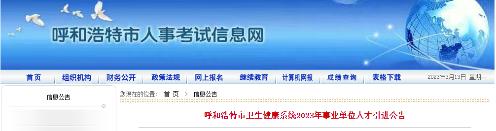 《呼和浩特市衛(wèi)生健康系統(tǒng)2023年事業(yè)單位人才引進(jìn)崗位表》