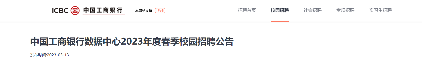 原文標(biāo)題:中國工商銀行數(shù)據(jù)中心2023年度春季校園招聘公告