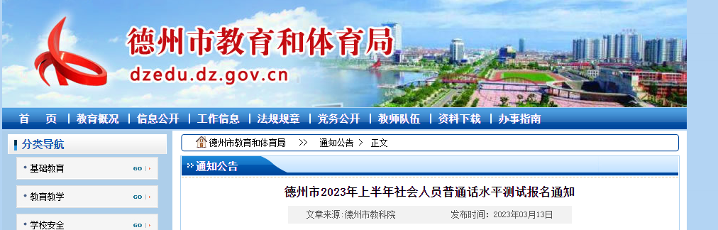 參加本次普通話報名測試所有通知以“德州市教育和體育局網站”和“德州市普通話水平測試”微信公眾號發(fā)布為準。