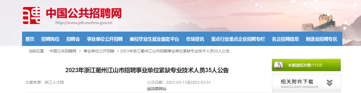 原文標(biāo)題:2023年浙江衢州江山市招聘事業(yè)單位緊缺專業(yè)技術(shù)人員35人公告