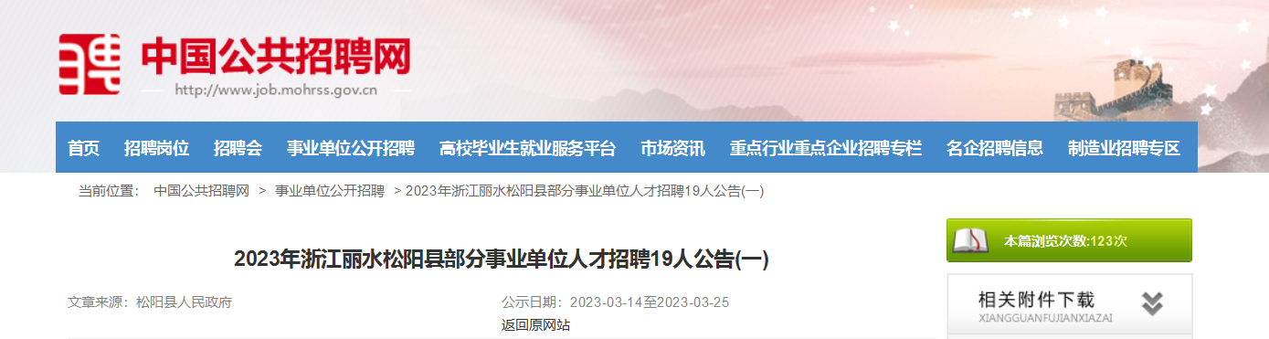 原文標(biāo)題:2023年浙江麗水松陽縣部分事業(yè)單位人才招聘19人公告(一)