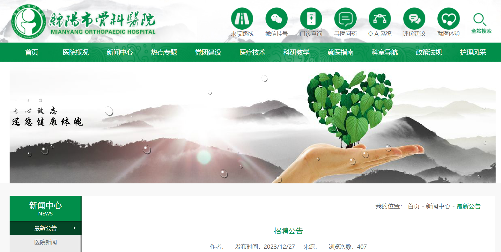 2023年四川綿陽(yáng)市骨科醫(yī)院招聘5人,現(xiàn)將招聘公告原文發(fā)布如下:
