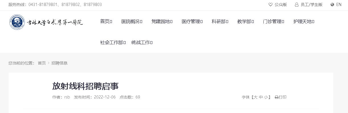 2022吉林大學(xué)白求恩第一醫(yī)院放射線科招聘,報(bào)名截止日期2022年12月12日下午4:00,現(xiàn)將招聘啟事原文發(fā)布如下: