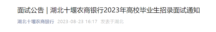 2023年湖北十堰農(nóng)商銀行高校畢業(yè)生招錄面試通知已發(fā)布,面試時(shí)間:2023年8月26日,現(xiàn)將公告發(fā)布如下: