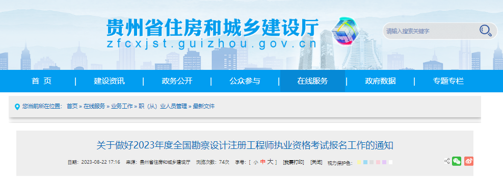 (三)有關本次考試全周期的重要信息,考試機構將通過“貴州省住房和城鄉(xiāng)建設廳”網站及時推送,請報考人員高度關注,以免貽誤。