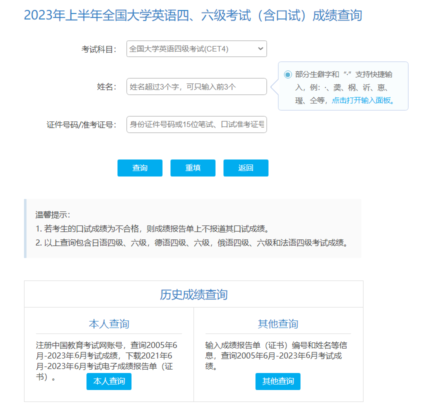 點(diǎn)擊進(jìn)入>>>2023年6月海南英語四級成績查詢及成績報(bào)告單查詢?nèi)肟?BR>