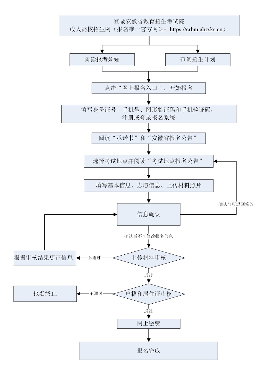 1.考生一般應(yīng)在戶口所在地報名。確因工作等原因需在我省報考的外省戶籍考生,須持有效的《安徽省居住證》(或電子居住證)進(jìn)行網(wǎng)上報名,居住證有效期限的起始時間應(yīng)在2022年9月4日(含)至2023年9月10日(含)之間,考試地點選擇發(fā)證公安機(jī)關(guān)所在地市。省內(nèi)跨市異地報考相關(guān)要求由各市招生考試機(jī)構(gòu)明確,請考生按照各市公告要求報考。