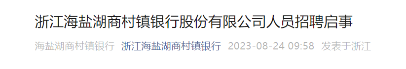 2023年浙江海鹽湖商村鎮(zhèn)銀行招聘10人,報名時間:即日起至2023年9月20日,現(xiàn)將招聘公告發(fā)布如下:
