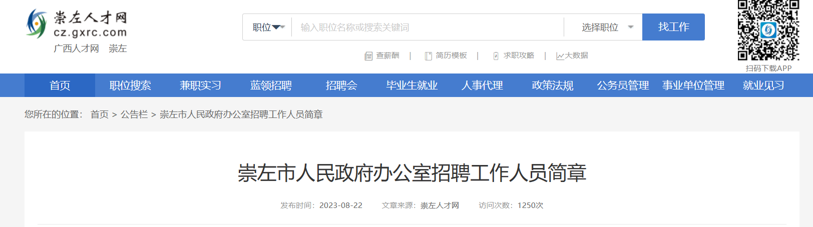 2023年廣西崇左市人民政府辦公室招聘6人。報名時間:2023年8月22日至9月3日。現(xiàn)將公告原文發(fā)布如下: