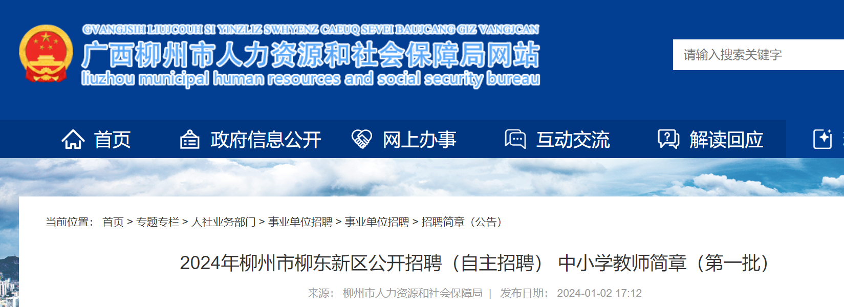 2024年廣西柳州市柳東新區(qū)第一批公開(kāi)招聘(自主招聘) 中小學(xué)教師41人,報(bào)名時(shí)間:2024年1月3日至2024年1月9日?,F(xiàn)將招聘公告原文發(fā)布如下: