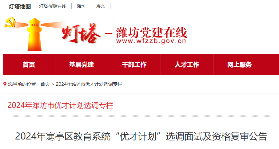 面試人選為通過網(wǎng)上資格初審的寒亭區(qū)教育系統(tǒng)選調(diào)職位考生。