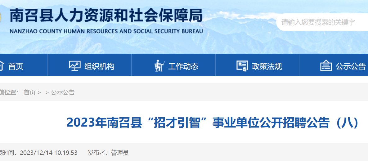 小編根據(jù)南召縣人力資源和社會保障局發(fā)布”關于2023年南召縣“招才引智”公開招聘事業(yè)單位工作人員體檢工作的通知“得知,2023河南南陽市南召縣“招才引智”事業(yè)單位招聘體檢時間為12月16日。
