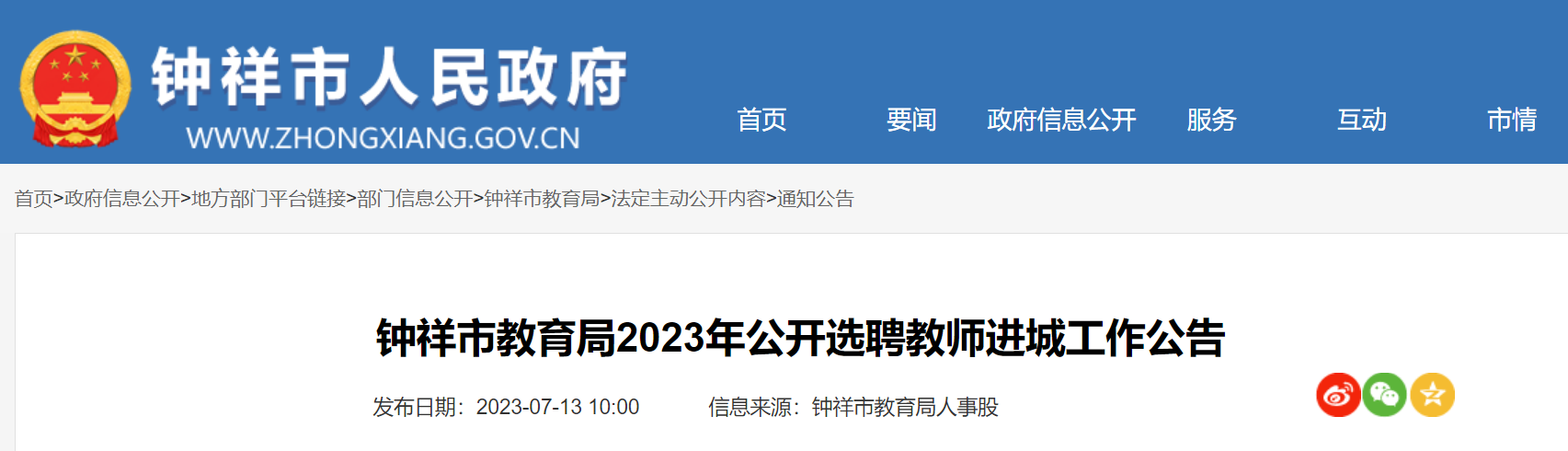 2023湖北荊門市鐘祥市教育局選聘教師120人,報名時間:2023年7月20日8:30至2023年7月21日18:00(工作時間)?,F(xiàn)將招聘公告原文發(fā)布如下:
