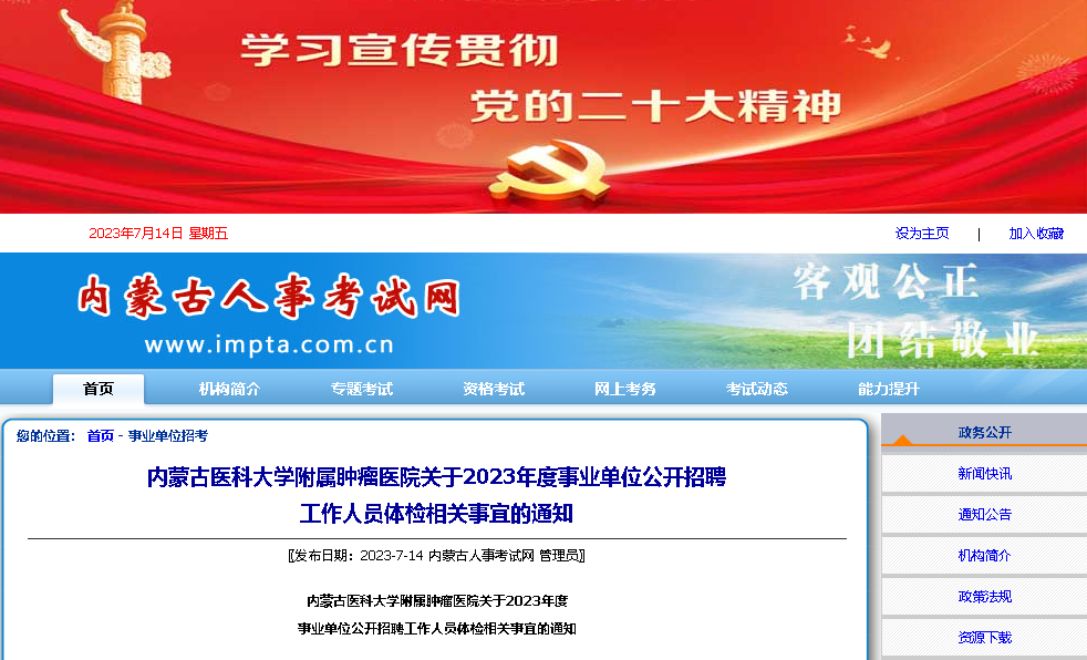 2023內(nèi)蒙古醫(yī)科大學附屬腫瘤醫(yī)院事業(yè)單位招聘人員體檢相關事宜通知已公布,體檢時間:2023年7月17日(星期一),現(xiàn)將招聘通知原文發(fā)布如下: