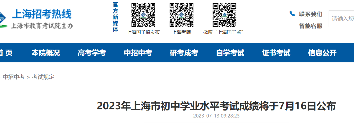 需要提醒的是,八年級在籍在讀考生的歷史科目成績將于7月19日16:00開通查詢,具體見《2023年上海市初中學業(yè)水平考試初二歷史科目統(tǒng)一考試成績將于7月19日公布》。