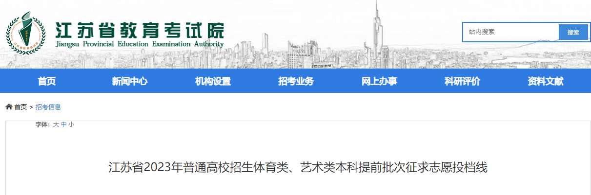 從江蘇省教育考試院了解到,江蘇省2023年普通高校招生體育類、藝術類本科提前批次征求志愿投檔線已公布,詳細內容如下:
