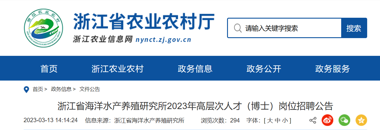 原文標題:浙江省海洋水產(chǎn)養(yǎng)殖研究所2023年高層次人才(博士)崗位招聘公告