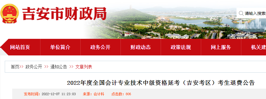 原標(biāo)題:2022年度全國(guó)會(huì)計(jì)專業(yè)技術(shù)中級(jí)資格延考(吉安考區(qū))考生退費(fèi)公告