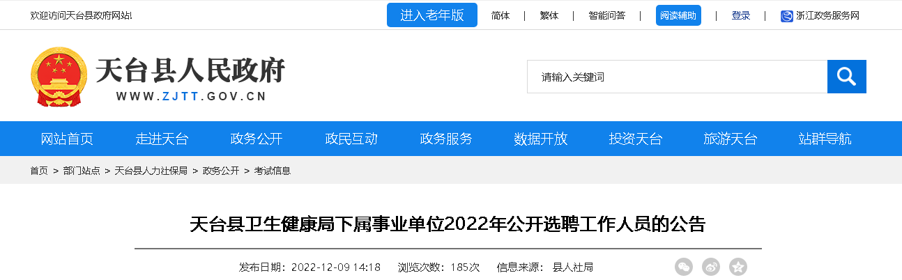 原文標(biāo)題:天臺(tái)縣衛(wèi)生健康局下屬事業(yè)單位2022年公開選聘工作人員的公告