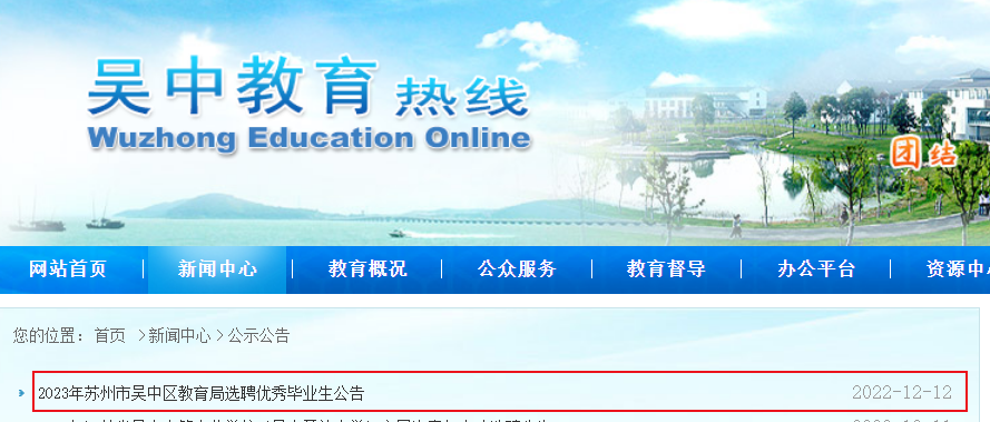 2023年江蘇蘇州市吳中區(qū)教育局選聘優(yōu)秀畢業(yè)生報名入口