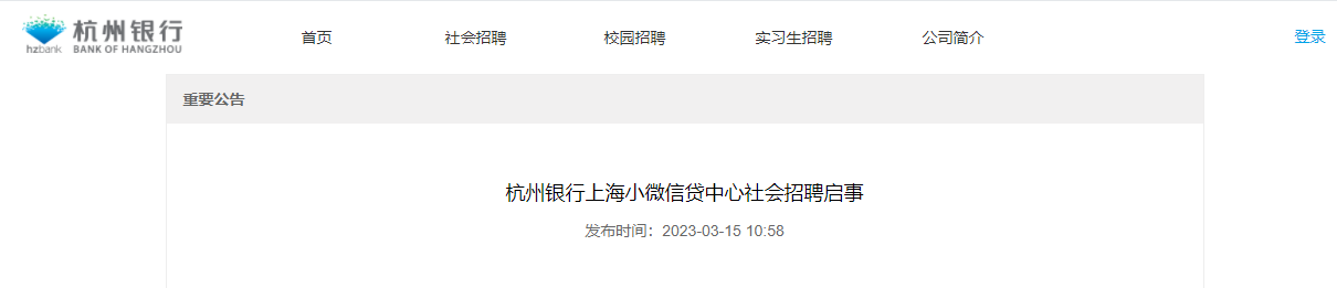 2023年杭州銀行上海小微信貸中心社會招聘啟事已發(fā)布,應(yīng)聘時間:2023年6月30日截止,現(xiàn)將招聘公告發(fā)布如下: