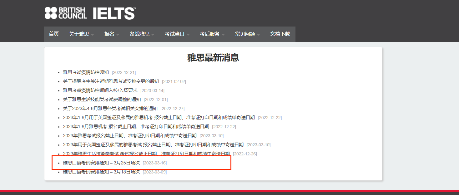 從中國教育考試網(wǎng)獲悉,雅思口語考試安排通知-2023年3月25日場次已公布,請相關人員仔細閱讀,具體詳情如下: