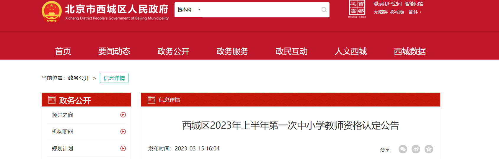 原文標(biāo)題:西城區(qū)2023年上半年第一次中小學(xué)教師資格認(rèn)定公告