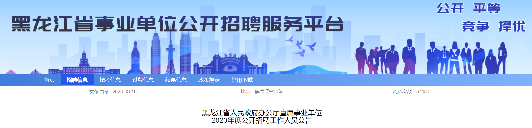 招聘公告在黑龍江省事業(yè)單位公開招聘服務平臺發(fā)布。