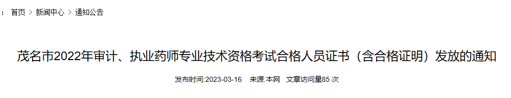 原文標(biāo)題:茂名市2022年審計(jì)、執(zhí)業(yè)藥師專業(yè)技術(shù)資格考試合格人員證書(含合格證明)發(fā)放的通知