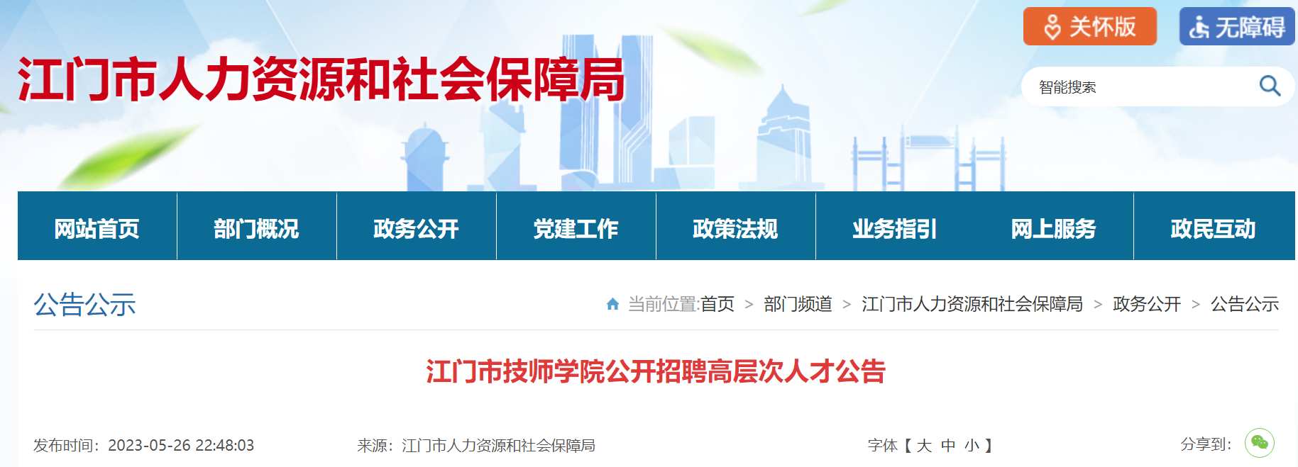 2023年廣東江門市技師學(xué)院招聘高層次人才5人,報名時間為2023年6月12日至18日?,F(xiàn)將招聘公告原文發(fā)布如下: