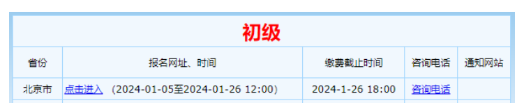 小編根據(jù)北京市財政局發(fā)布“北京市財政局關(guān)于2024年度北京市會計專業(yè)技術(shù)初、高級資格考試報名及有關(guān)事項的通知”得知,2024年北京初級會計職稱報名入口已開通,報名時間為1月5日8:00-26日12:00。
