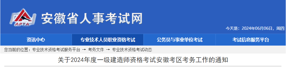 從安徽省人事考試網獲悉,《2024年安徽一級建造師職業(yè)資格考試考務工作通知》現已公布,報名時間:6月7日-17日,考試時間:9月7日-8日,更多事宜請參考閱讀《考務通知》,官方公告原文如下: