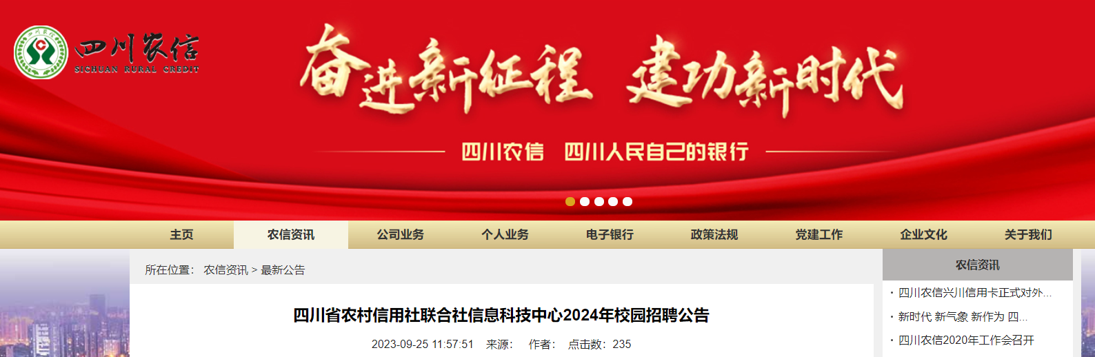 2024年四川省農(nóng)村信用社聯(lián)合社信息科技中心校園招聘300人,簡(jiǎn)歷投遞時(shí)間:2023年11月5日24時(shí)截止,現(xiàn)將招聘公告發(fā)布如下:
