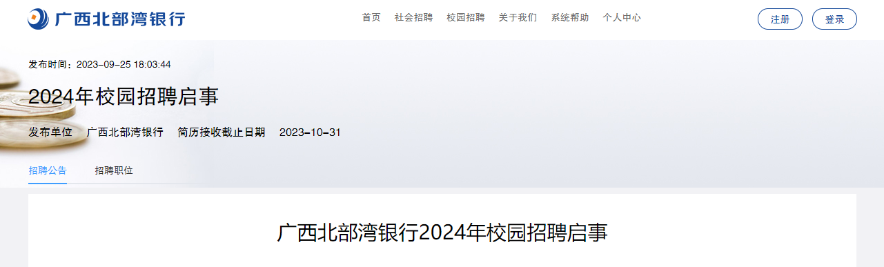 2024年廣西北部灣銀行校園招聘啟事已發(fā)布,簡(jiǎn)歷投遞時(shí)間:2023年10月31日截止,現(xiàn)將招聘公告發(fā)布如下: