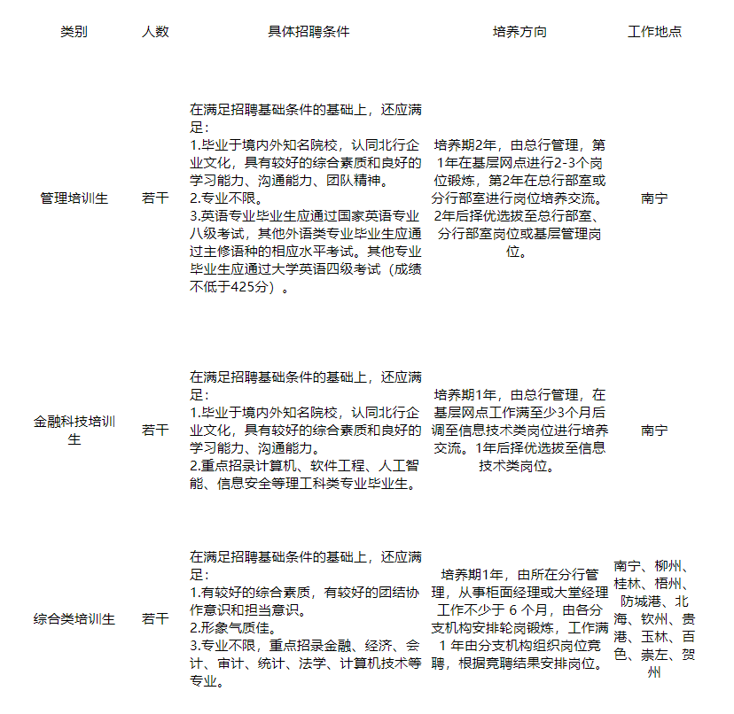(六)廣西北部灣銀行有權(quán)根據(jù)崗位需求變化和報(bào)名情況等因素,調(diào)整、取消個(gè)別崗位的招聘工作,對(duì)本次招聘享有終解釋權(quán)。