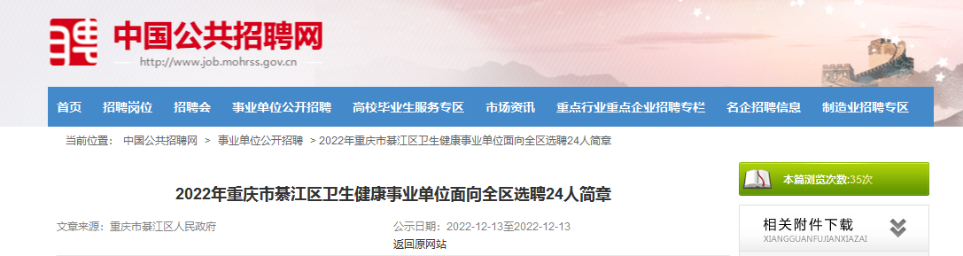 原文標(biāo)題:2022年重慶市綦江區(qū)衛(wèi)生健康事業(yè)單位面向全區(qū)選聘24人簡章