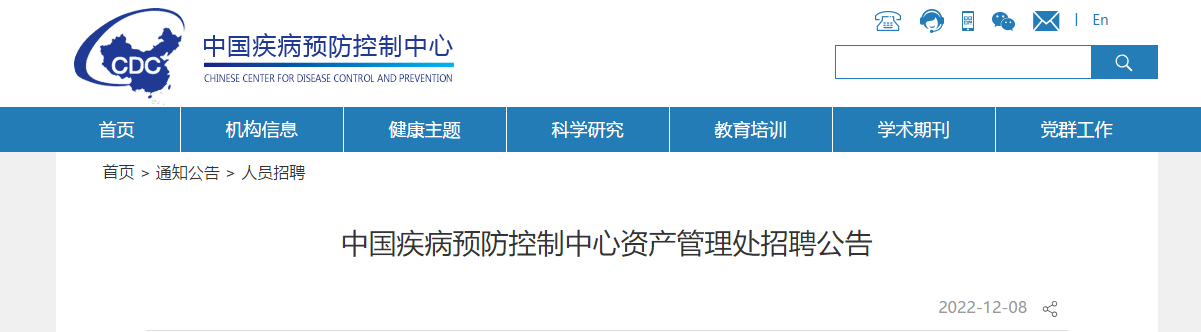 2022年北京市中國疾病預防控制中心資產(chǎn)管理處招聘1人。現(xiàn)將公告原文發(fā)布如下: