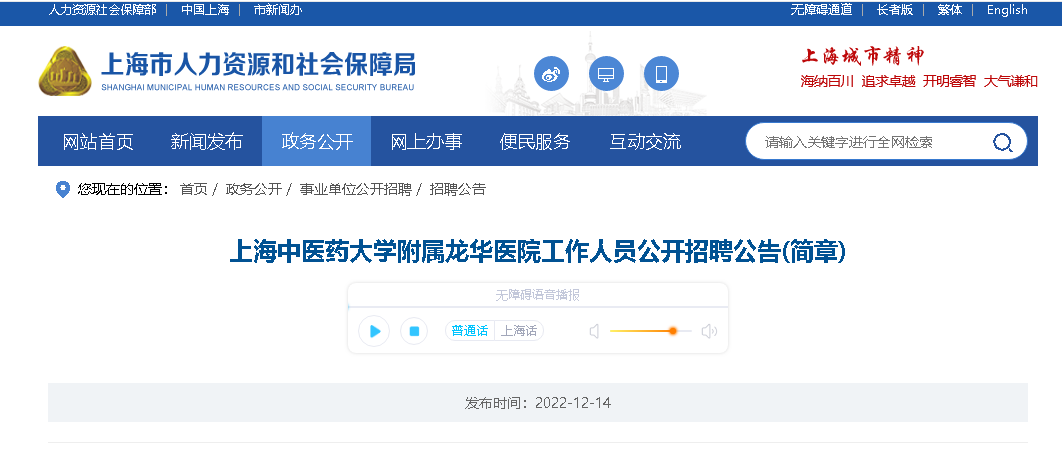 原文標題:上海中醫(yī)藥大學附屬龍華醫(yī)院工作人員公開招聘公告(簡章)