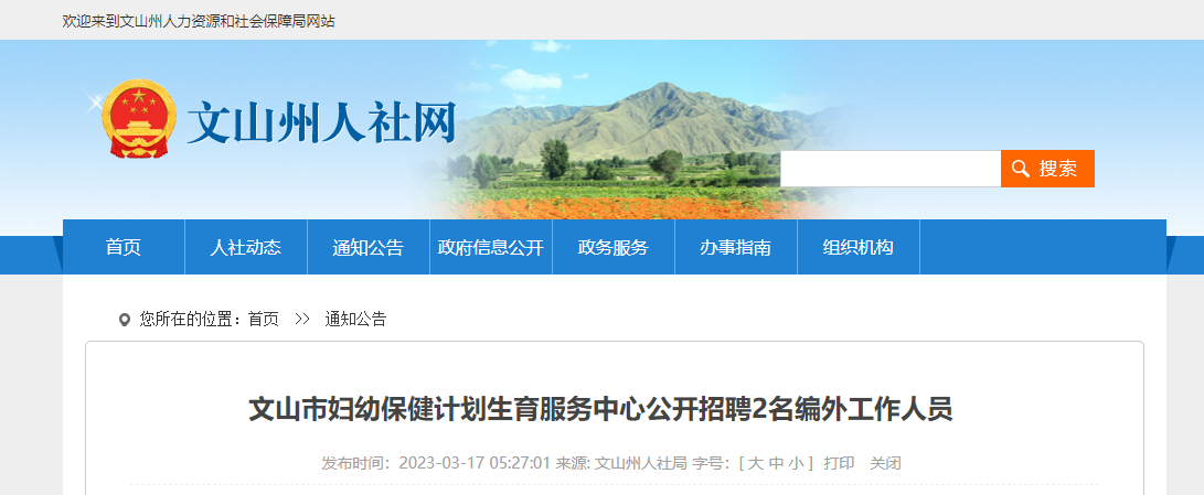 2023云南文山州文山市婦幼保健計(jì)劃 生育服務(wù)中心招聘2名編外人員,報(bào)名時間:本通告發(fā)布之日起至3月20日,現(xiàn)將招聘公告原文發(fā)布如下: