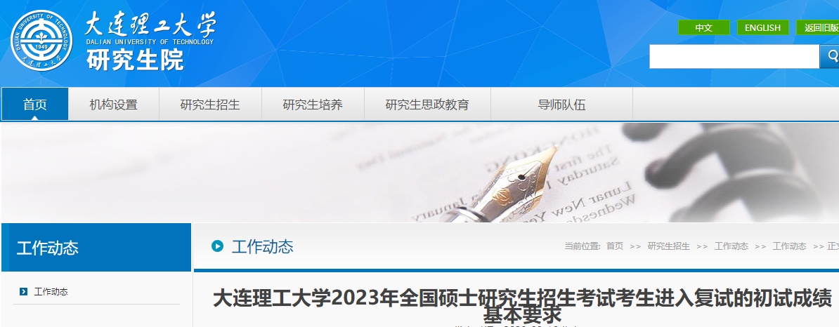 原文標(biāo)題:大連理工大學(xué)2023年全國碩士研究生招生考試考生進(jìn)入復(fù)試的初試成績(jī)基本要求