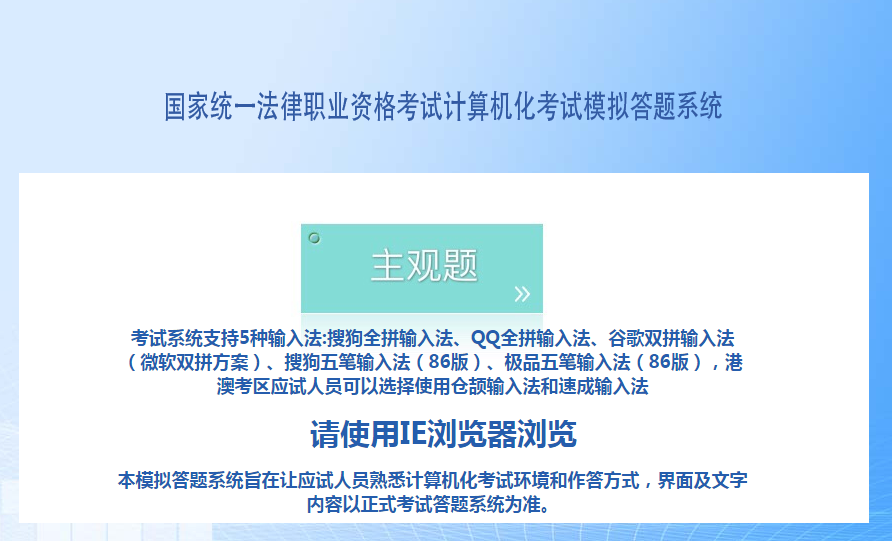 2022年度國家統(tǒng)一法律職業(yè)資格考試主觀題考試將于2023年3月26日舉行。為便于廣大考生適應(yīng)計算機化考試答題方式,熟悉計算機化考試答題要求,司法部已上線2022年度國家統(tǒng)一法律職業(yè)資格考試主觀題考試模擬答題系統(tǒng)!